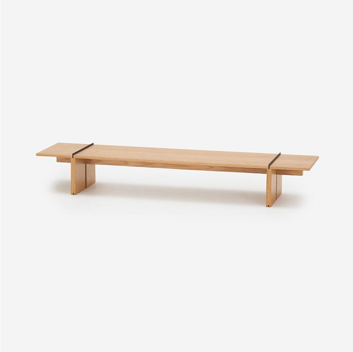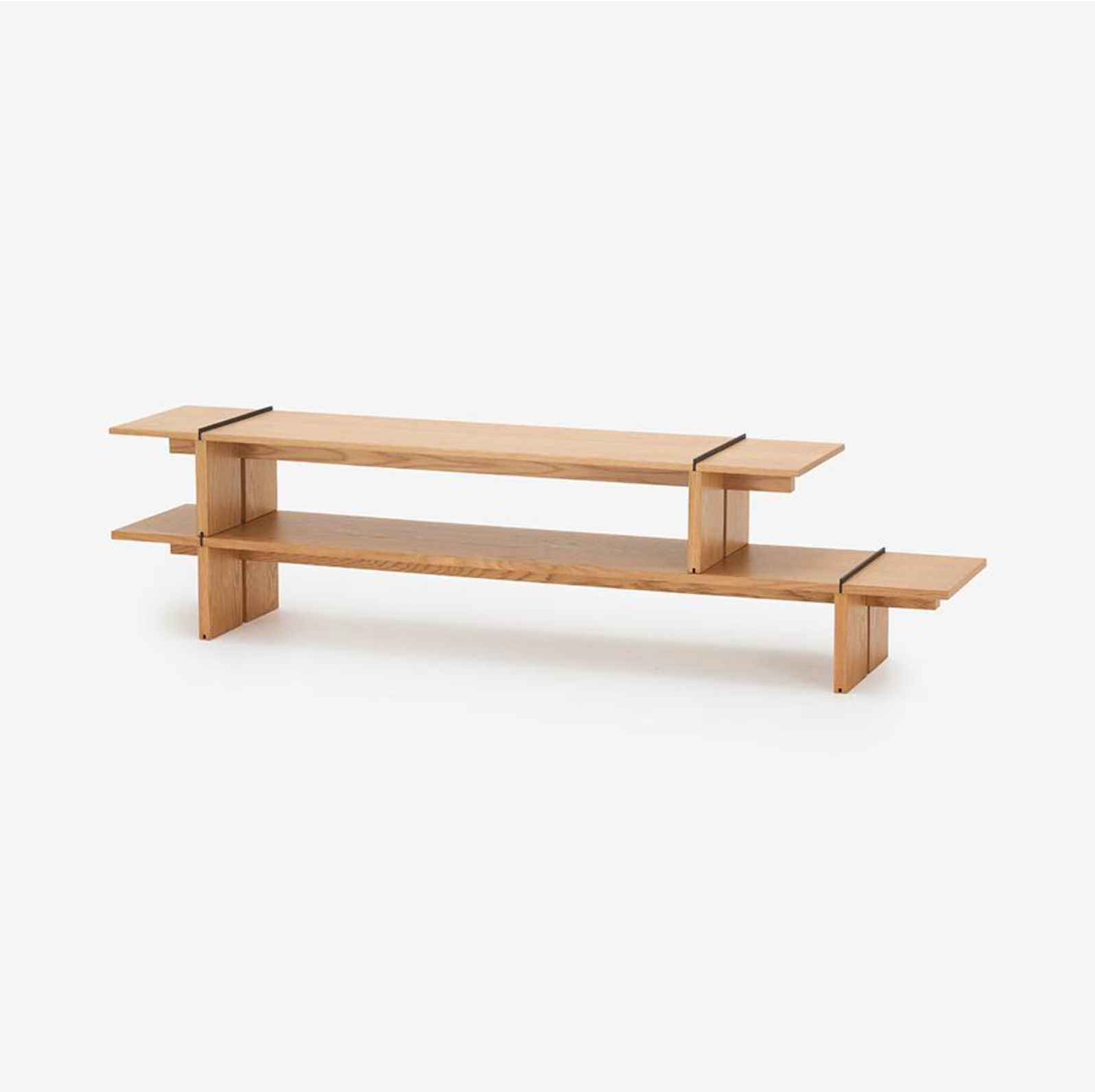 靈活方便的設計,分別為寬:150 cm / 180 cm 的款式。可作為獨立的客廳桌、電視櫃使用,亦能將不同尺寸的兩台櫃子疊放作為裝飾層架。其水平嵌入的金屬線條與切口設計,不僅提升了整體的視覺美感,更增加了堆疊時的穩固性與安全性。