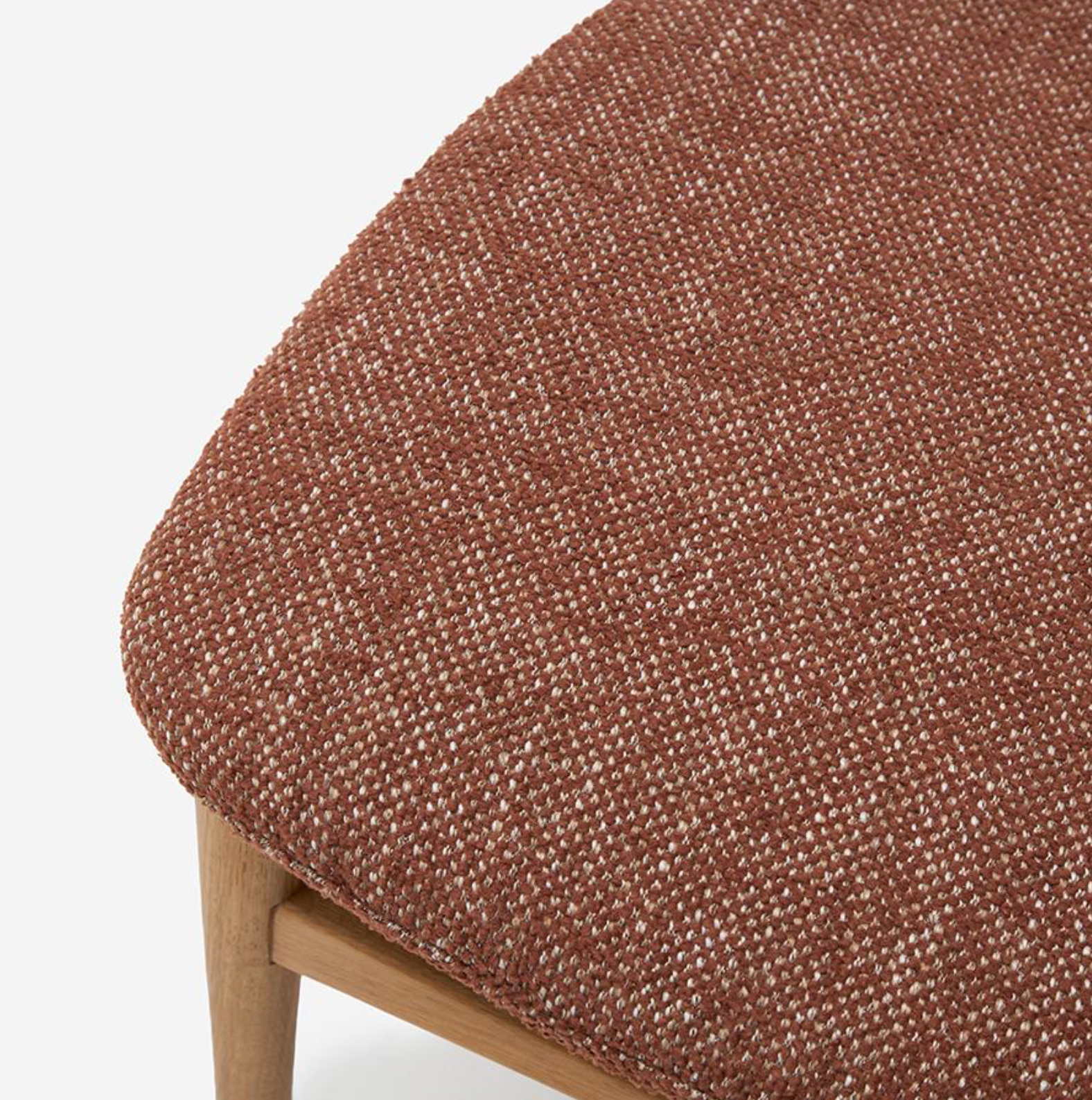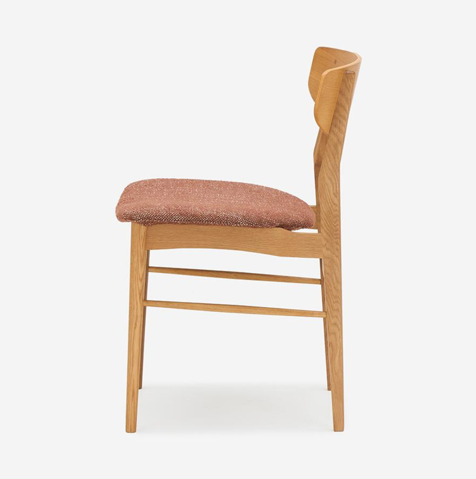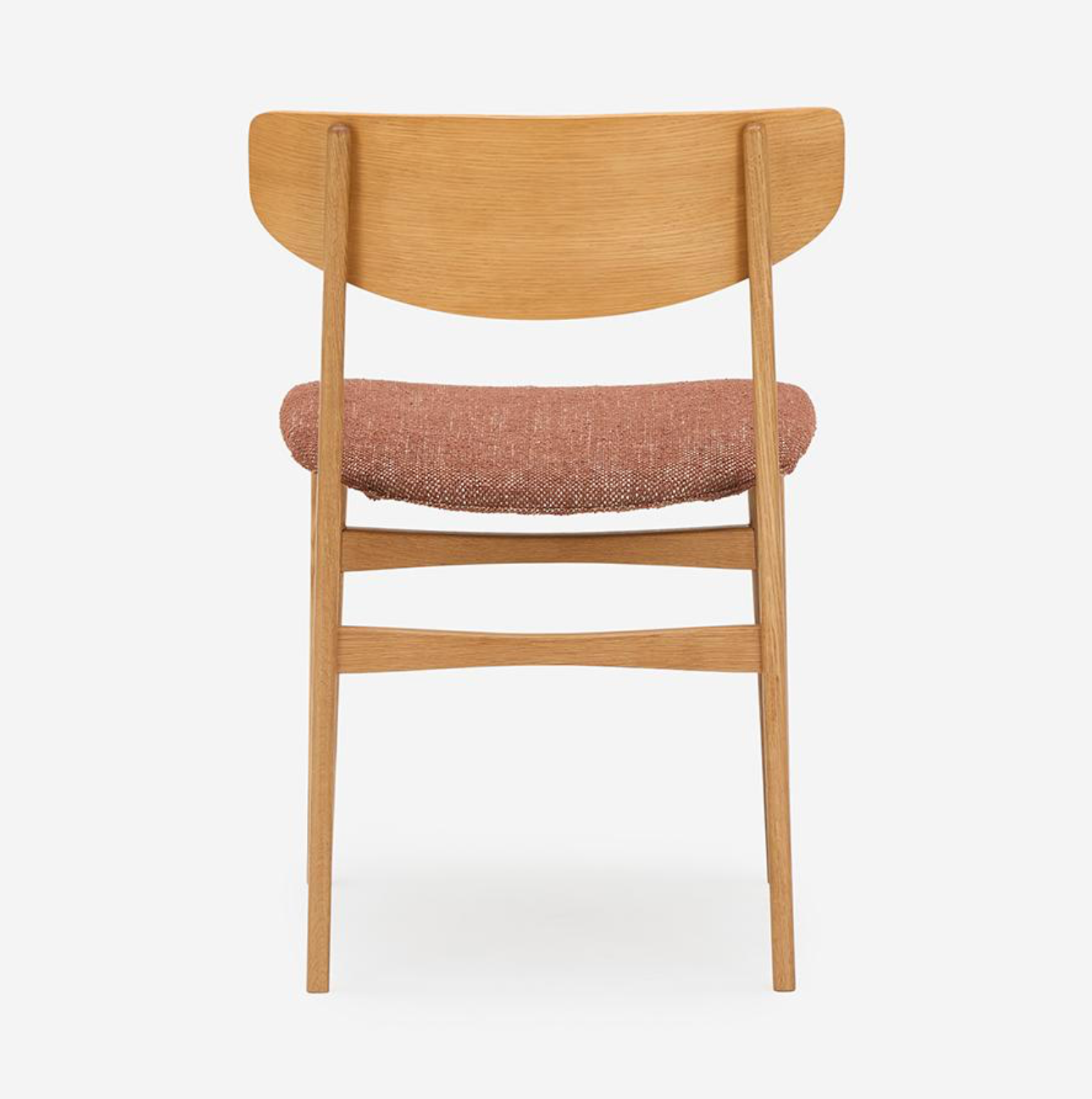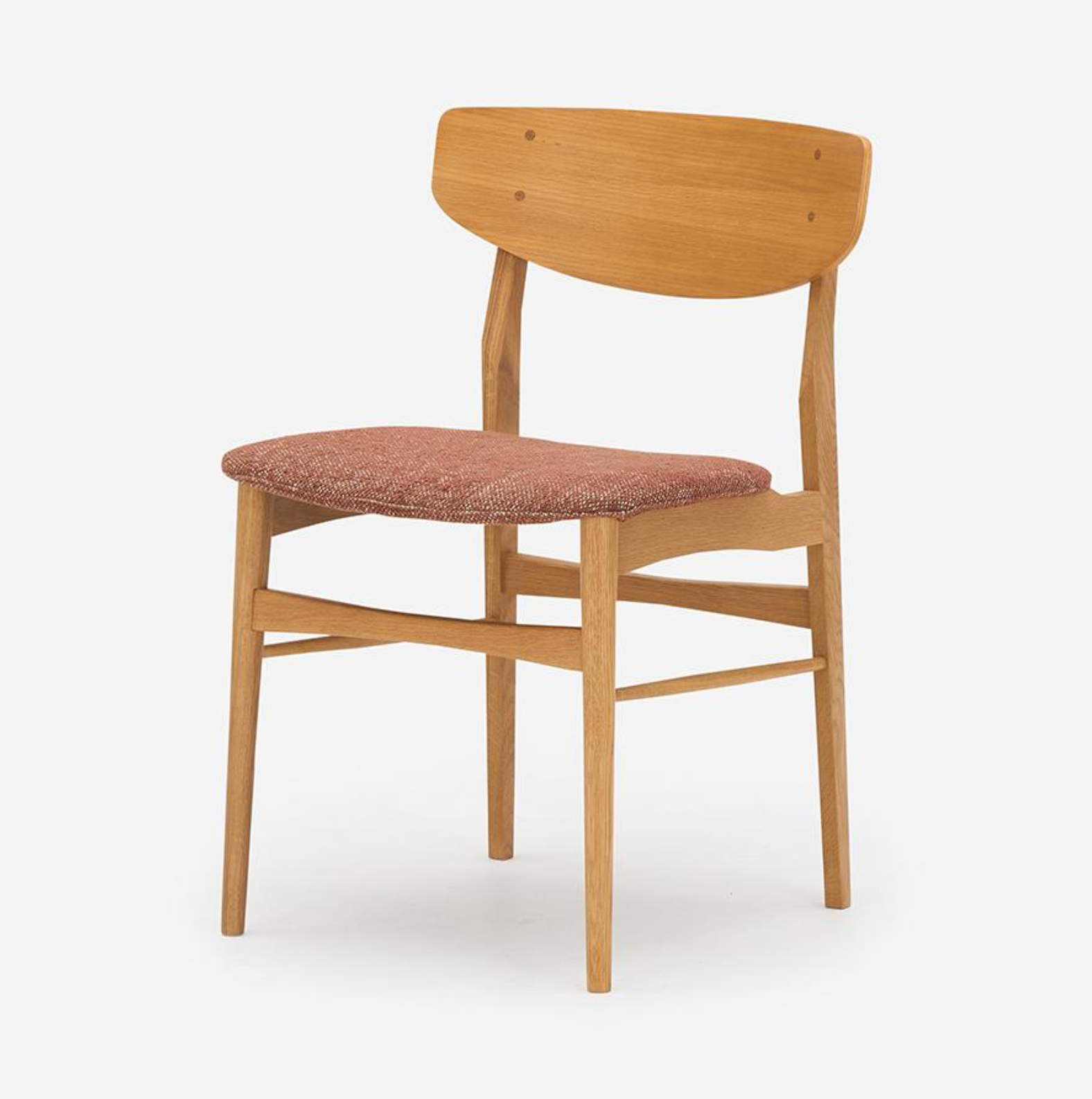 此款餐椅以纖細的零件構成輕盈、柔合的輪廓。設計細節體現北歐有機設計對人體工學的考量:座墊前緣的弧度減少了對大腿的壓迫感;寬大的椅背具備包覆的支撐。此外,曲線椅背與椅腳接合處的圓形木栓細節,穩固結構,也提升精緻度,呈現出手工家具的溫度。