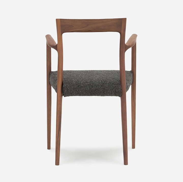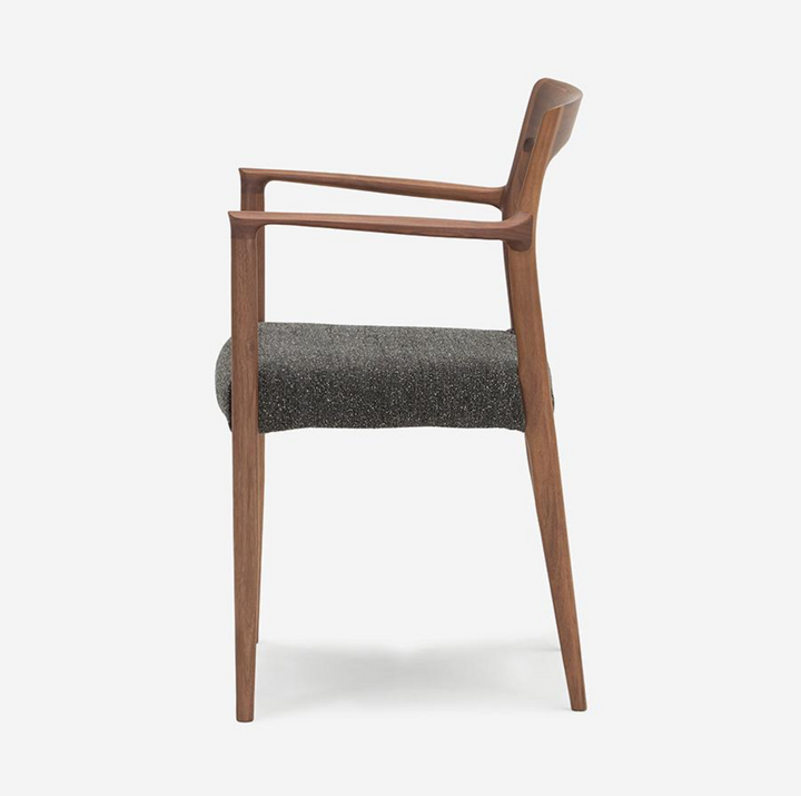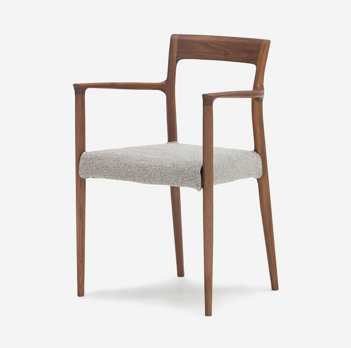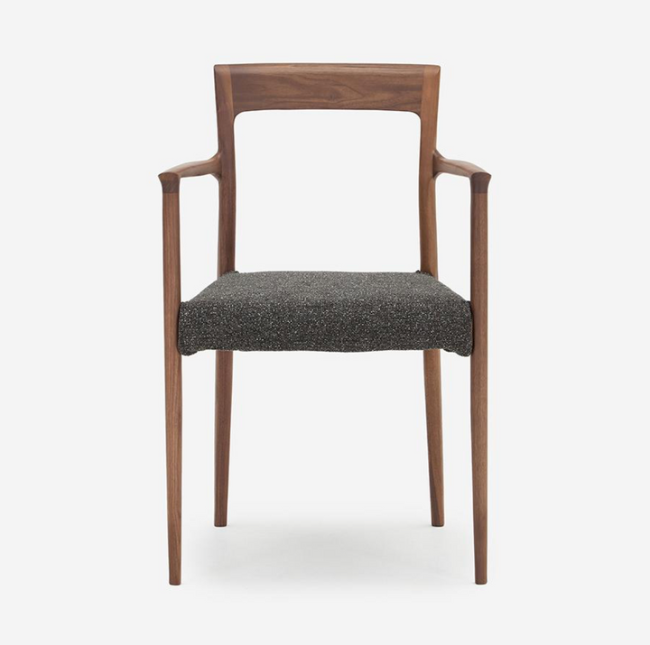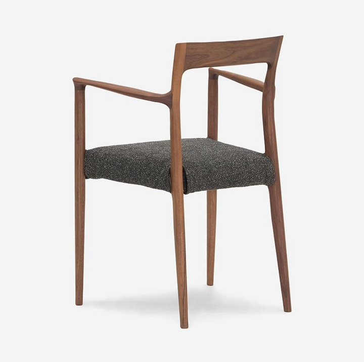 此款單椅專為「與美食共處」而生。設計上細膩地在座墊前緣底側加入木製框架,優化了腿部後側的觸感;背靠角度採取較為挺立的設定,不僅適合端正入座,更讓小巧身型使用者,能在用餐時感受到理想的支撐力。