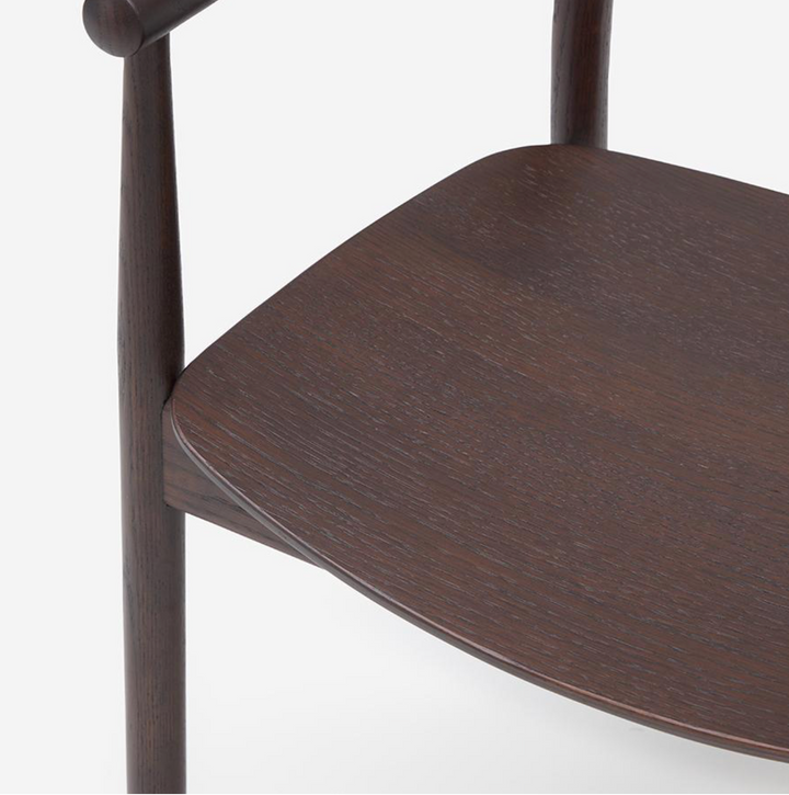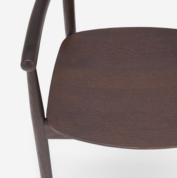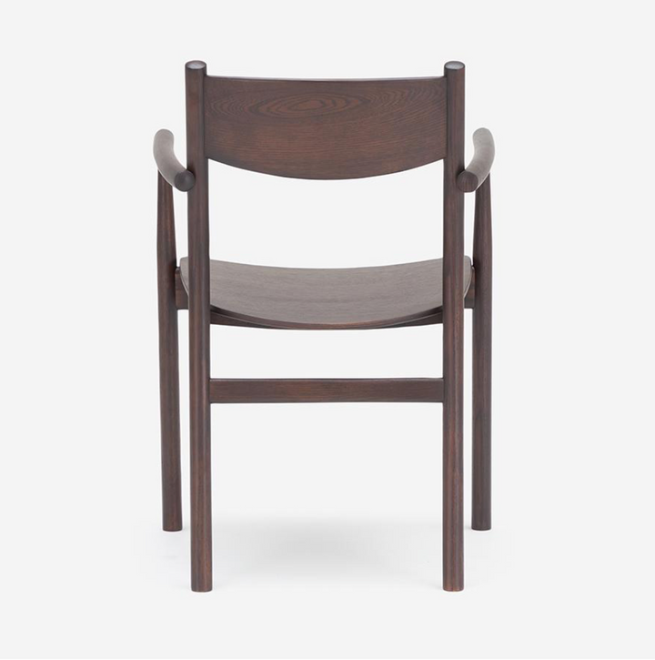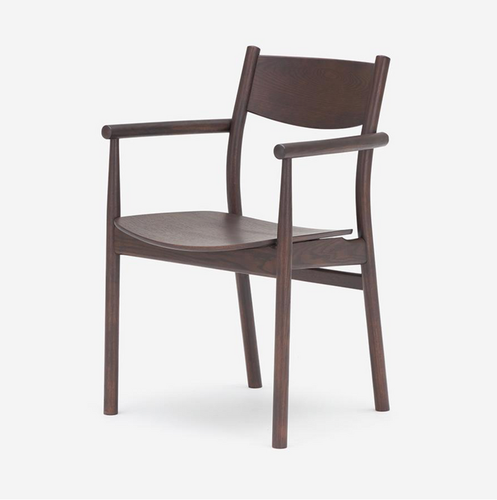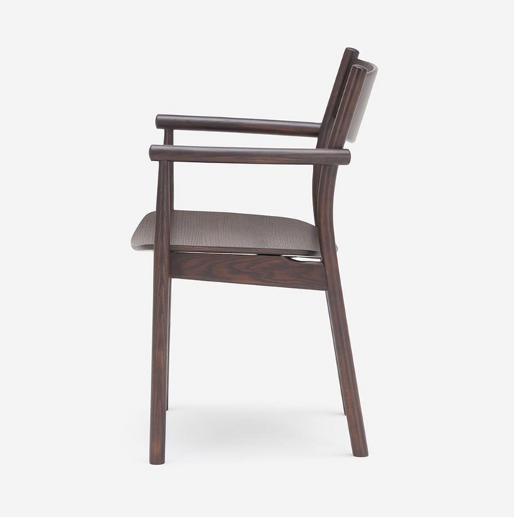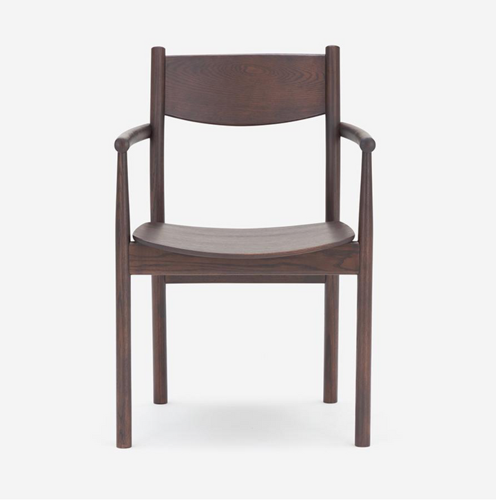 Type-B 單椅以提供紮實的「包覆感」與「穩定性」為設計核心,並有全實木版座及柔軟坐墊可選擇,寬大的背靠與扶手結構,穩定支撐背部與手臂,讓長時間用餐或交談更加舒適。扶手與框架的銜接處圓潤滑順,展現出日本職人的製作工藝。