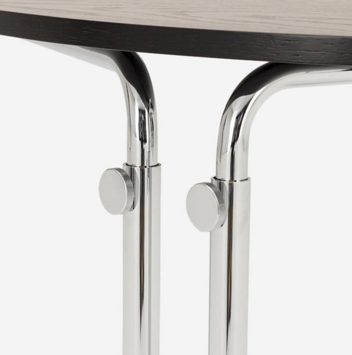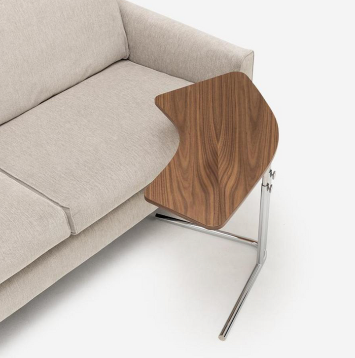 延續品牌標誌性的機能美學,K26 採用「ㄇ」字型支撐結構,底座可輕易滑入沙發或床底空間,將天板拉近至手邊使用。支柱高度可在 46 至 76 公分之間自由調節,展現出色的適應性與美感。