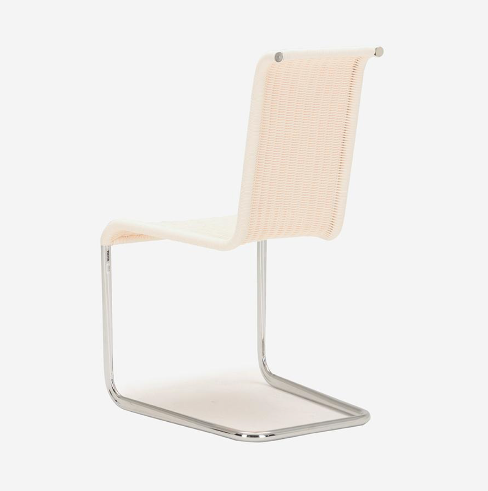 此款為TECTA 最暢銷的經典單椅,完美體現包浩斯的現代主義精神與設計哲學。全椅由單根鋼管彎曲形成一體式結構,獨特的「懸臂構造(Cantilever)」取消了後腳支撐,營造出漂浮般的輕盈、極簡視覺,並賦予座面柔韌觸感。